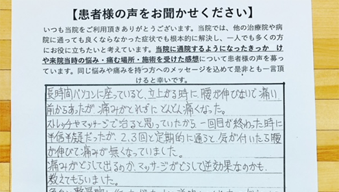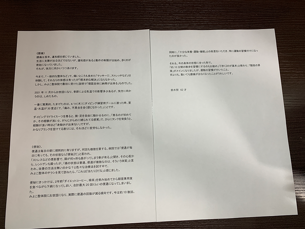 何よりも、動いても腰痛が出なくなったことがうれしいです。